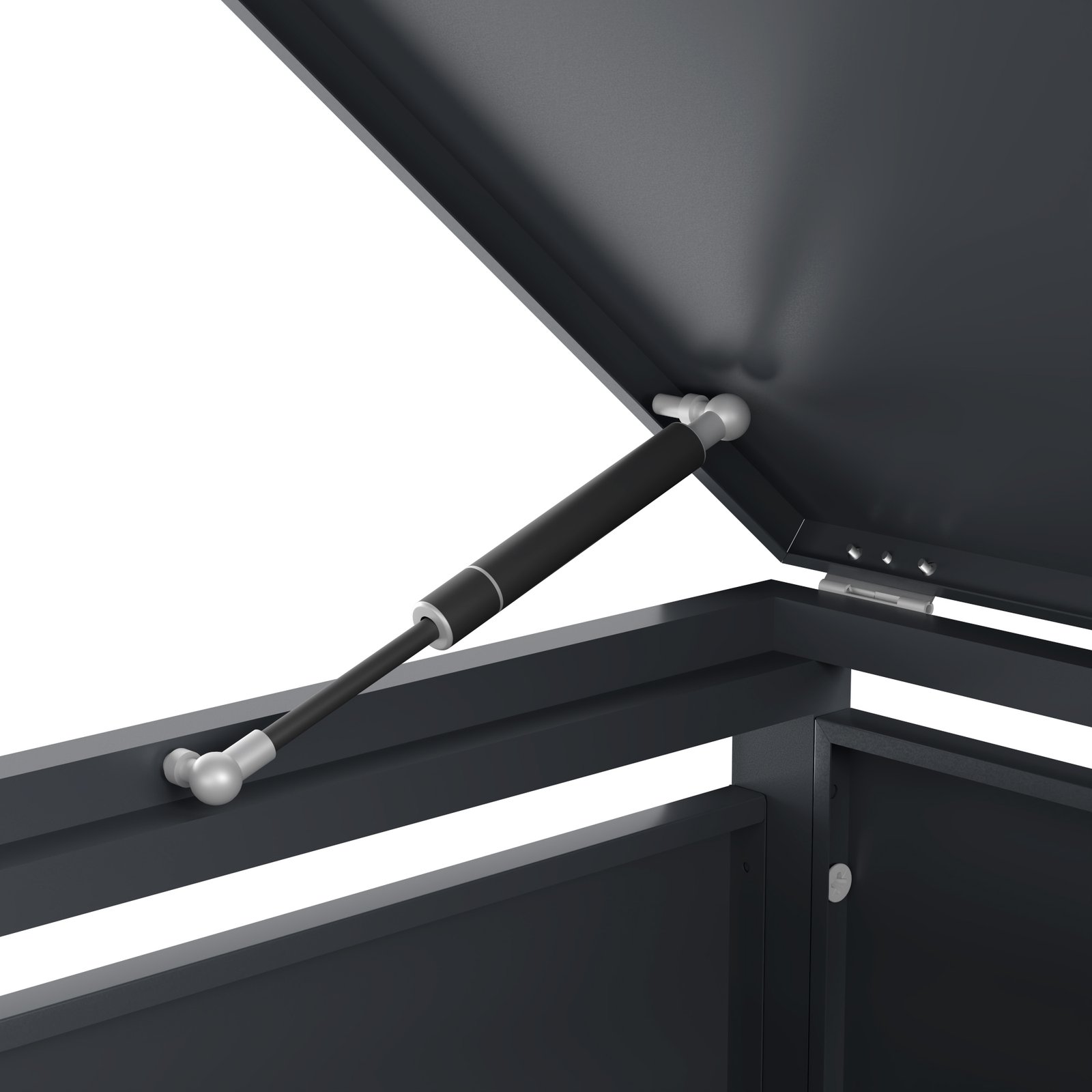 Gas Strut Assistance: Premium shocks assist with a one-handed lift operation of the top lid so you can deposit trash easily.