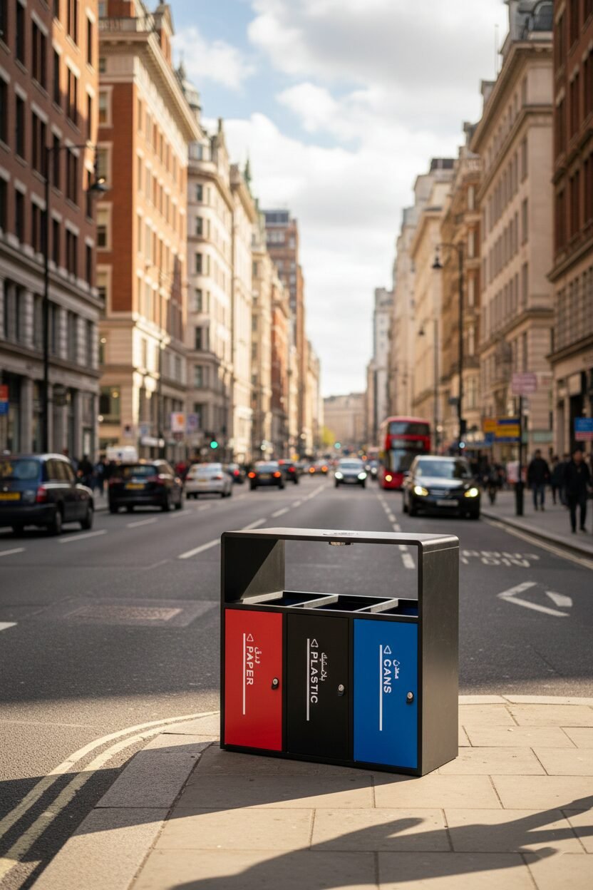 Modular Triple-Stream Sorting: Marked compartments for paper, plastic, and cans reduce contamination.