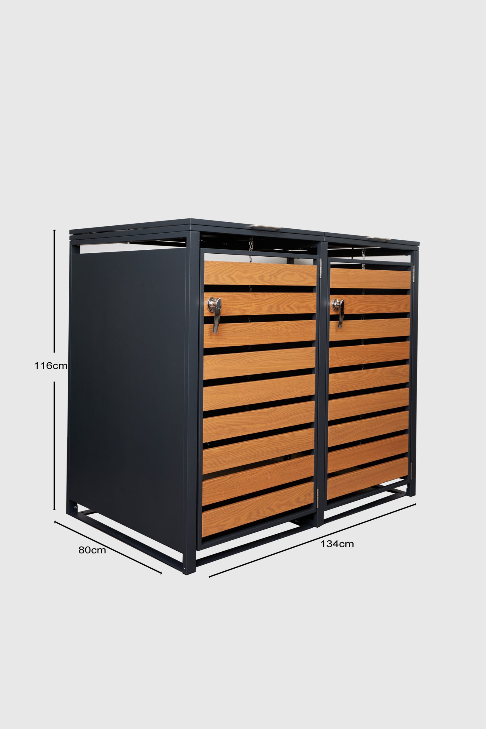 Hide unsightly bins while adding a warm, natural touch to your home with our Outdoor Garbage Storage Sheds in a premium wood-grain finish. Combining the rustic beauty of timber with the high-strength durability of galvanized steel, this secure enclosure features hydraulic gas struts for effortless access and lockable doors for maximum security. It is the perfect maintenance-free solution for homeowners who want a classic aesthetic without the rot or warping of real wood.