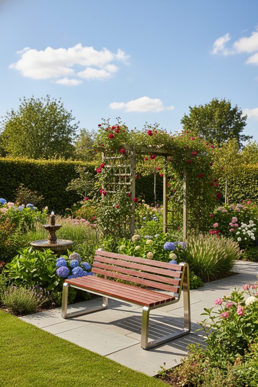 Coastal Resilience: The corrosion-resistant stainless steel makes this bench ideal for humid and seaside climates.